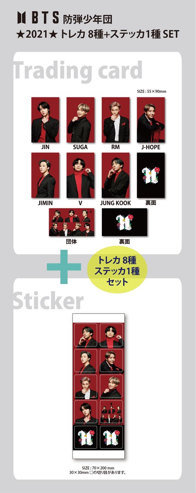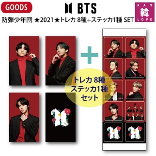 BTSグッズ 2021RED-ver トレカ 8種+ステッカ1種 SET おまけ:生写真1+トレカ1+サンキューカード3(7070191128-11)