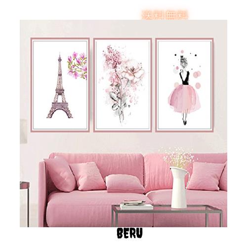 ◆商品名:不二玩家 ウォールステッカー ピンク 花 エッフェル塔 パリ ガール 北欧 インテリア ポスター ウォール 装飾 M0217