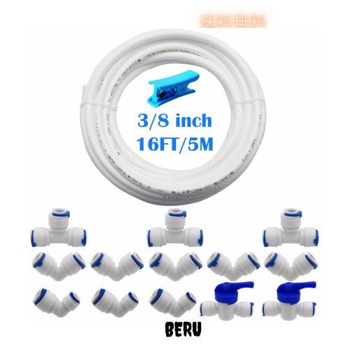 ★パッケージ:5個3/8 ”Lタイプ水フィルターフィッティング、3個3/8” Tタイプ水フィルターフィッティング、2個3/8 ”シャットオフバルブ、3個Lタイプコネクタ1/4”から3/8 ””フィッティング 、5メートルの3/8 ”給水パイプと1個のチューブカッター。十分な量でさまざまな要求を満たすことができます。