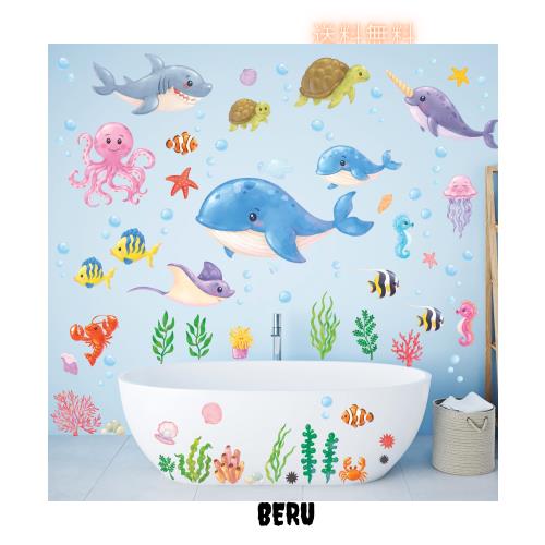 DECOWALL DS12-8081 海の中 ウォールステッカー デコ クジラ タコ 熱帯魚 カメ サメ ヒトデ クラゲ 幼稚園 保育園 子供部屋 DIY 壁転写