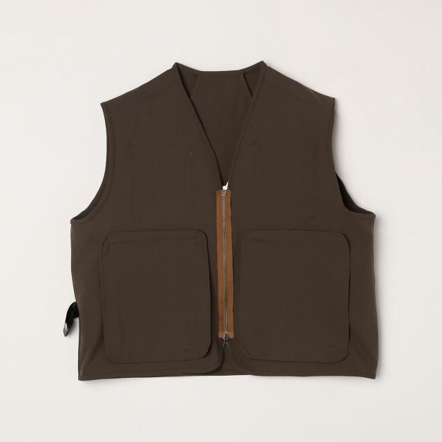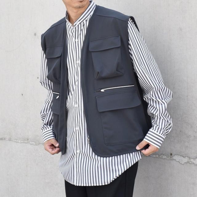 ポケットやジップをあしらい、デザインポイントとして存在感のあるアイテムに仕上げたジップベストです。