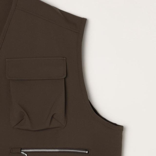 デザイン性の高いマルチポケットが付いたレイヤリングにぴったりなジップベスト