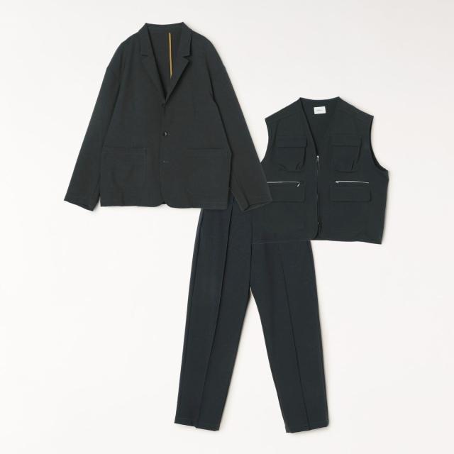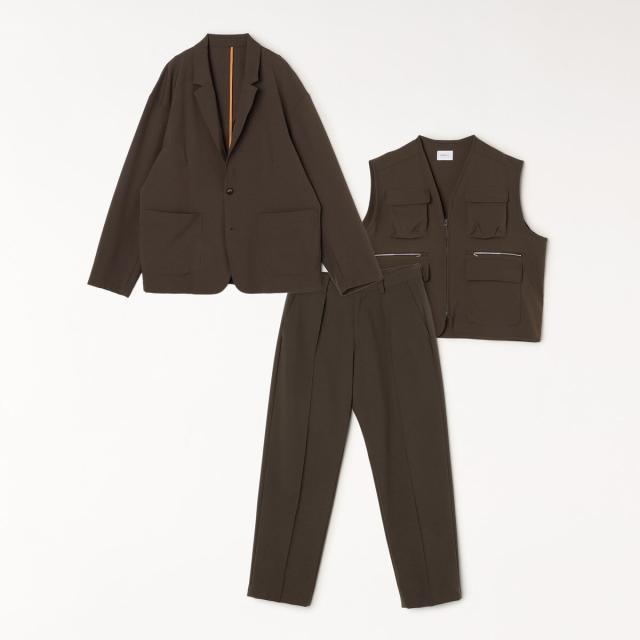 こちらは、同素材のジャケットとパンツの展開もあり、3ピースセットアップスタイルやパンツとのカジュアルコーディネートもオススメです!