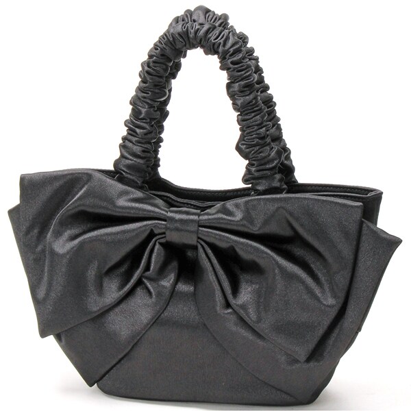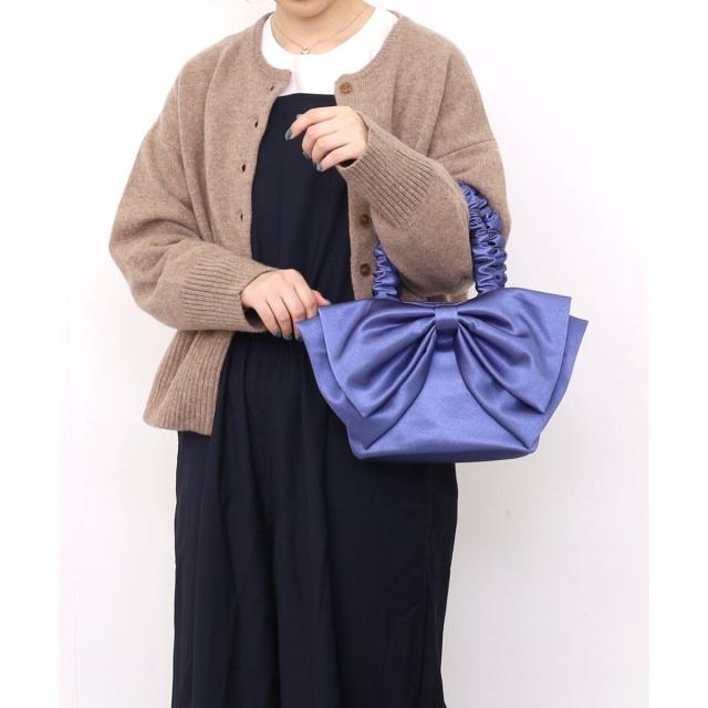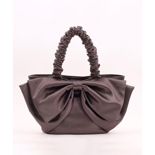 フロントに華やかなサテンリボンをあしらった印象的なデザインのトートバッグ。
