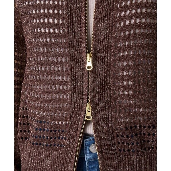 ・トレンドのラメ糸を使用したメッシュ編みカーディガン