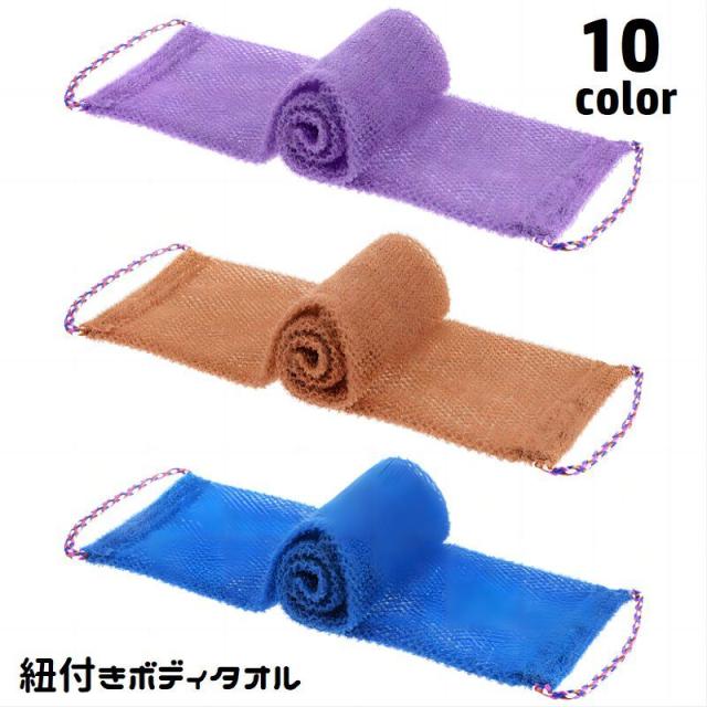 ボディタオル ロング 紐付き 持ち手付き 両面 背中洗い 身体洗い メッシュ バス用品 泡立て シンプル 使いやすい お風呂