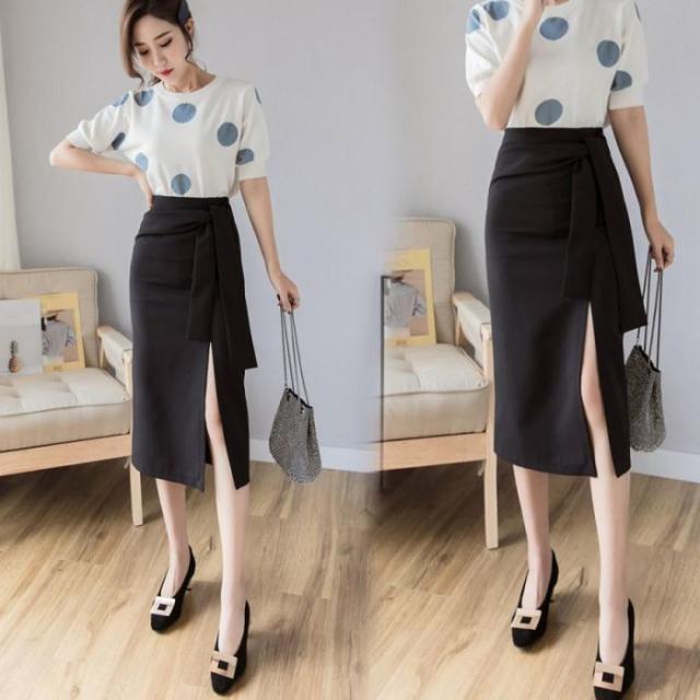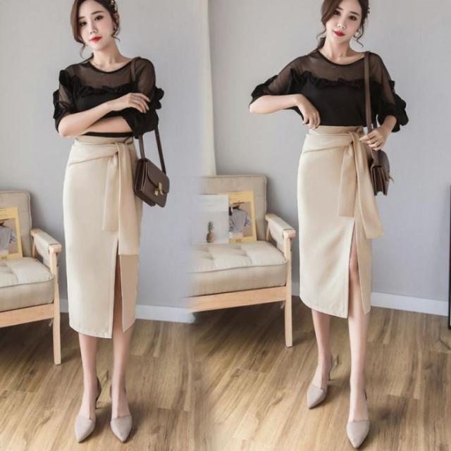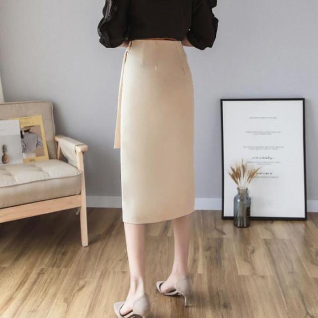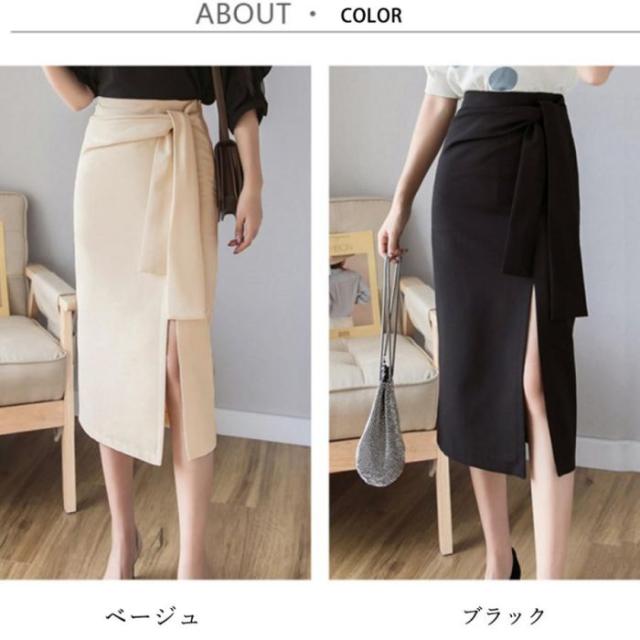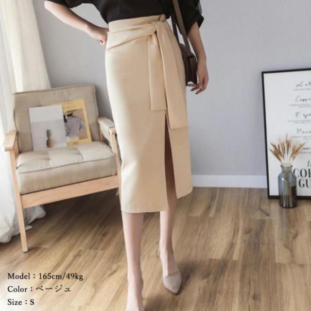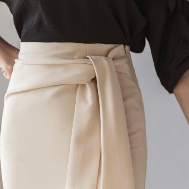 動きのあるディテールデザインが魅力のウエストリボンタイトスカートです