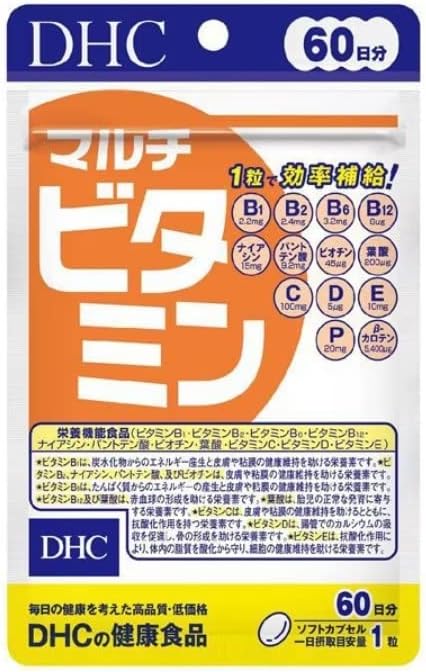 【栄養機能食品】 ナイアシン、パントテン酸、ビオチン、ビタミンB1、ビタミンB2、ビタミンB6、ビタミンB12、ビタミンC、ビタミンD、ビタミンE、葉酸 【名称】 ビタミン類含有食品 【原材料】 オリーブ油(スペイン製造)/ゼラチン、ビタミンC、グリセリン、デュナリエラカロテン、酵素処理ルチン、ナイアシン、ヘスペリジン(オレンジ由来)、ビタミンE、パントテン酸Ca、ミツロウ、ビタミンB6、ビタミンB2、ビタミンB1、レシチン(大豆由来)、葉酸、ビオチン、ビタミンB12、ビタミンD3 【栄養成分(1粒545mgあたり)】 熱量:2.9kcaL たんぱく質:0.15g 脂質:0.19g 炭水化物:0.14g 食塩相当量:0.001g ナイアシン:15mg(115) パントテン酸:9.2mg(192) ビオチン:45μg(90) ビタミンB1:2.2mg(183) ビタミンB2:2.4mg(171) ビタミンB6:3.2mg(246) ビタミンB12:6.0μg(250) ビタミンC:100mg(100) ビタミンD:5.0μg(91) ビタミンE:10.0mg(159) 葉酸:200μg(83) ビタミンP:20mg β-カロテン:5400μg ※()内の値は、栄養素等表示基準値(18歳以上、基準熱量2200kcaL)に占める割合(%)です。