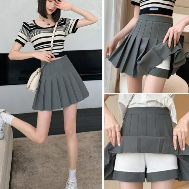 レディース 可愛い Aラインスカート ハイウエスト ショートスカート インナーパンツ付き お洒落スクールスカート 着やせ