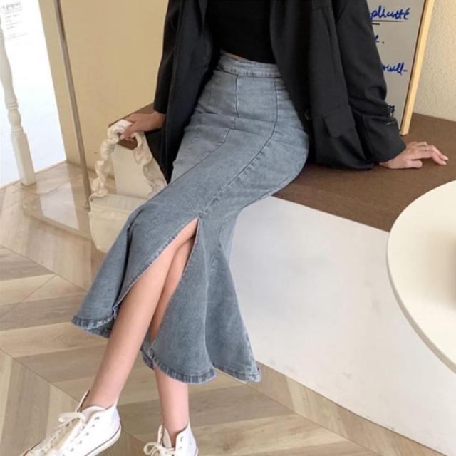 タイトスカート ロング丈 レディース デイリーコーデ 美ライン 可愛い フレアスカート ミモレ丈 スリット入り 韓国風