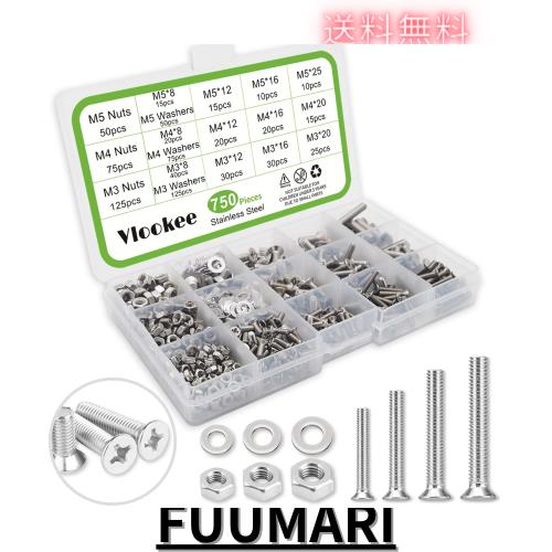 750本入 ねじ セット M3 M4 M5 超低頭 皿ねじ SUS304 ステンレス 十字穴付き 皿ねじ 皿ビス さら小ねじ ネジ 精密機器用なべ小ねじ ナッ