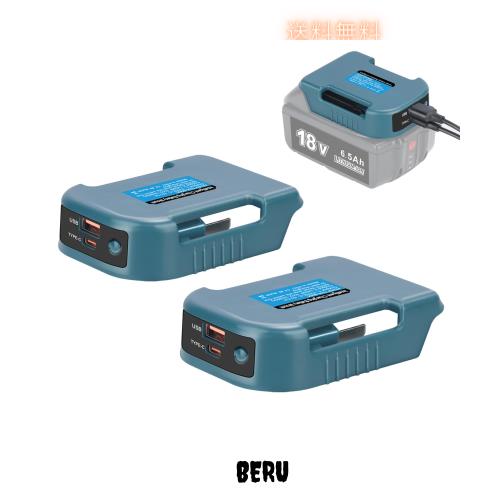 KUNLUN マキタアダプター 充電器アダプター マキタ18Vバッテリー対応 USBマキタ バッテリーアダプター 2個セット Type-C 充電 スマホや