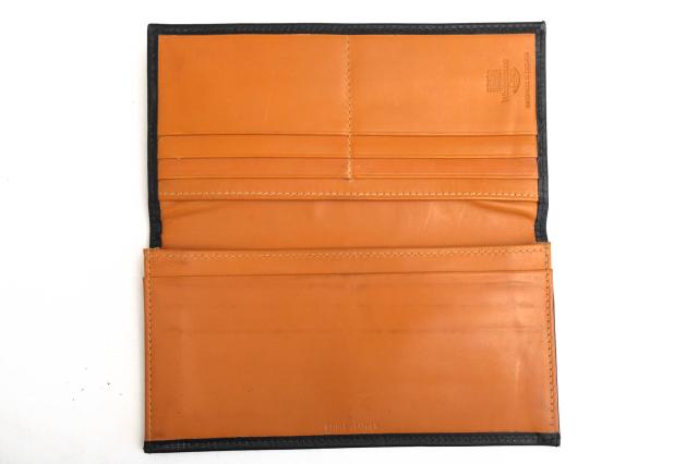 スーツの内ポケットに入れるのに最適なスリムなロングウォレット。6つのカード収納と札入れスペースはマチが広く取られており、お金が貯まりそうな収納力の高い構造。