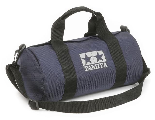 タミヤのロールボストンバッグはネイビーブルーの地にライトグレイのタミヤロゴ、そしてストラップと手さげ部分をブラックとしたシックなカラーリング。
