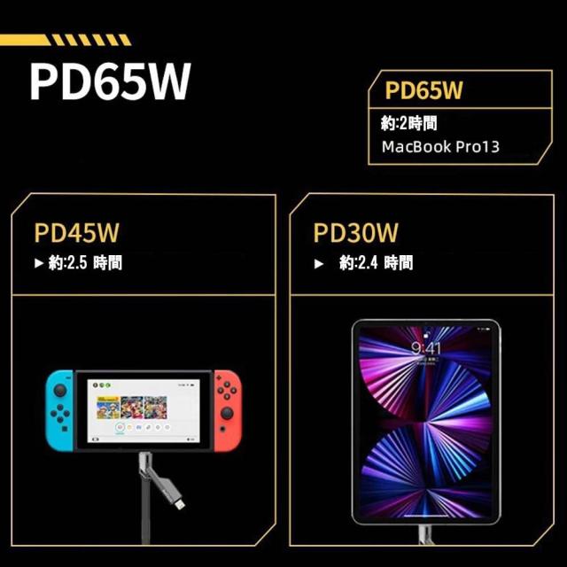 ■60Wの高速充電 最大480mbpsの高速データ転送:USB PD(*)(Power Delivery)技術に対応し 4in1ケーブルは最大60W (60W 3A)まで、安全かつ安定して出力できます。 また、データ転送はUSB 2.0に対応。最大480Mbpsのスピードに対応しています。 USB PDとは、一つのケーブルでデータ転送とフレキシブルな電源供給を実現し、USBの性能を最大限に引き出す物を指します。 *本製品はUSB 2.0に準拠しており、映像出力には対応しておりません。