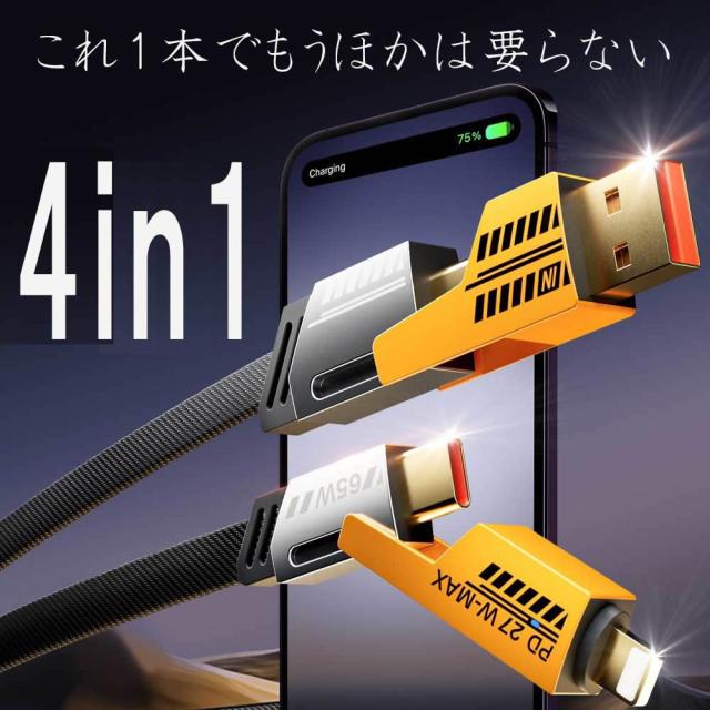 Type -C USB充電ケーブル 4in1ケーブル C to C/タイプc to iOS用8Pin/USB A to USB C/USB A to iOS用8Pin 1m 65w 27w 急速充電 組み合わせ自由 PD対応 高耐久素材 Macbook/iPhone/iPad/Galaxy/Google Pixel/Switch 対応 その他 Android等