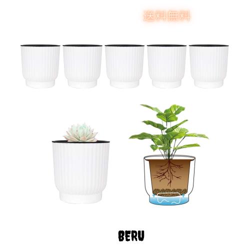 T4U 12CM プラスチック製 自己給水 プランター 植木鉢 ポット現代風装飾 家庭植物/多肉/花植物/ハーブ/サボテン 適用 ホワイト 6点セッ