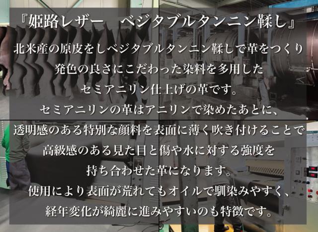 姫路レザーと呼ばれる革の名産地「姫路」で鞣されたベジタブルタンニンレザー。