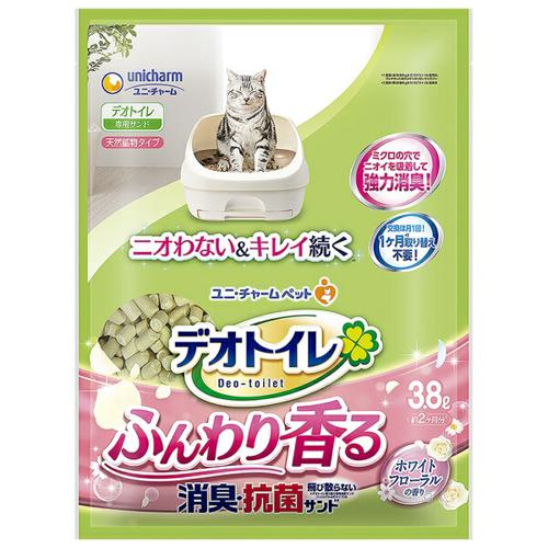 【ケース販売】 ユニチャーム デオトイレ ふんわり香る消臭・抗菌サンド ホワイトフローラルの香り 1袋3.8L入×4袋セット