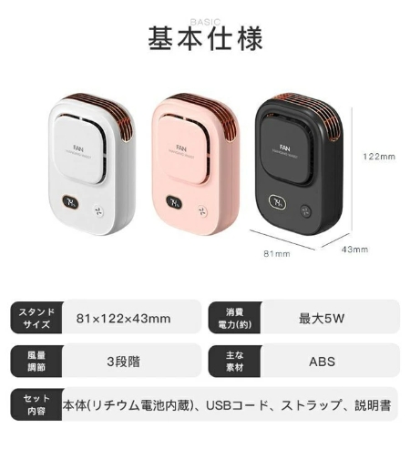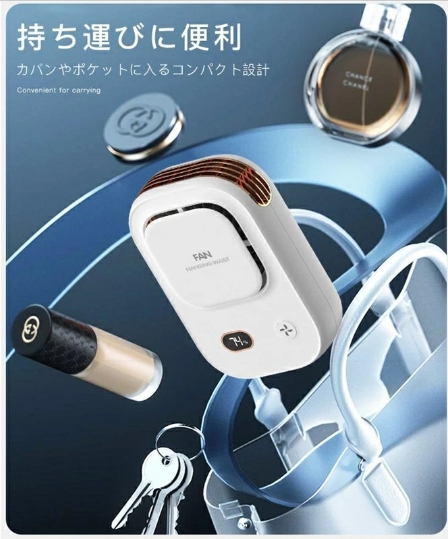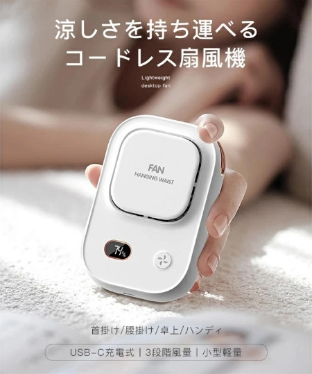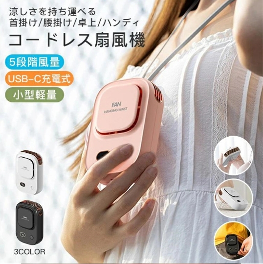 ハンディファン 首掛け 腰掛け 卓上 ハンディ 扇風機 冷風機 静音 コードレス扇風機 3段階風量 小型 強風 USB-C 充電式 軽量 アウトドア コンパクト リズム ハンディファン リズム