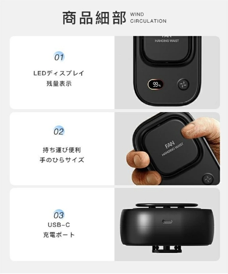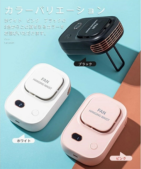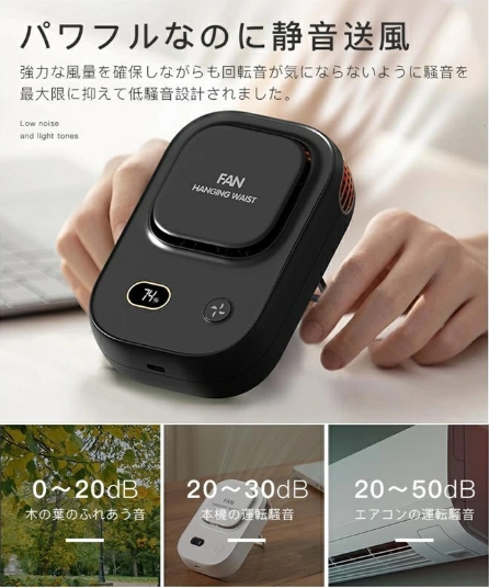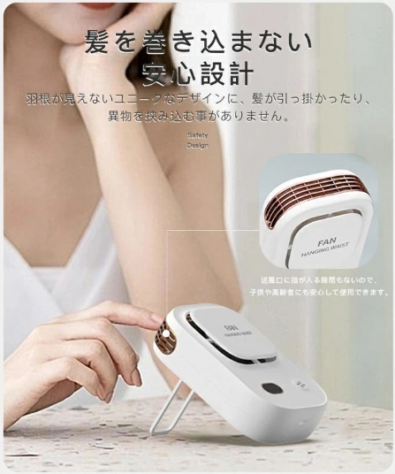 ベルトフックで腰にかけて使用することで作業しながらでも涼しい空気を体感可能。