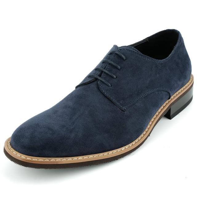 KIXSTAR スラックスに合う靴 カジュアルシューズ メンズ スエード レースアップ ビジネス デッキシューズ 通勤用 軽量 ネイビー 25.0cm
