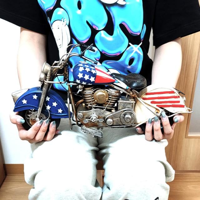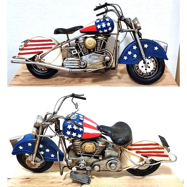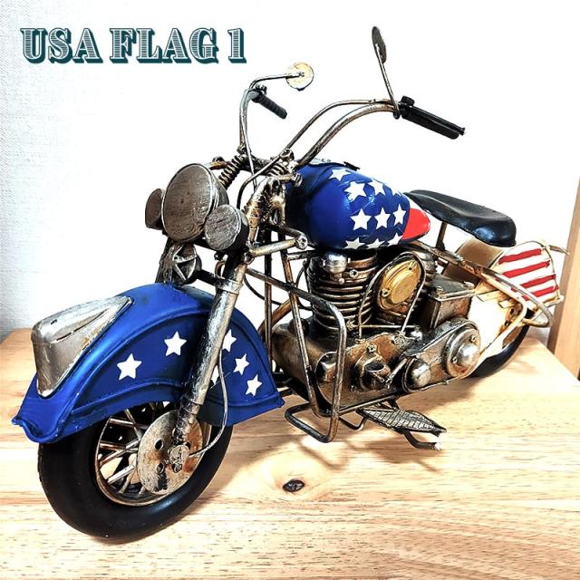 ヴィンテージ モーターサイクル アメリカン バイク オブジェ 国旗 星条旗 アンティーク 置物 ブリキ かっこいい ビンテージ