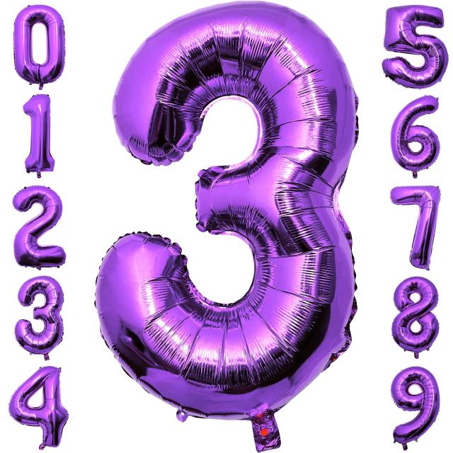 大きい 数字 3 バルーン バースデー パーティー 誕生日 風船 飾り セット 40inch,100cm (紫, 3)