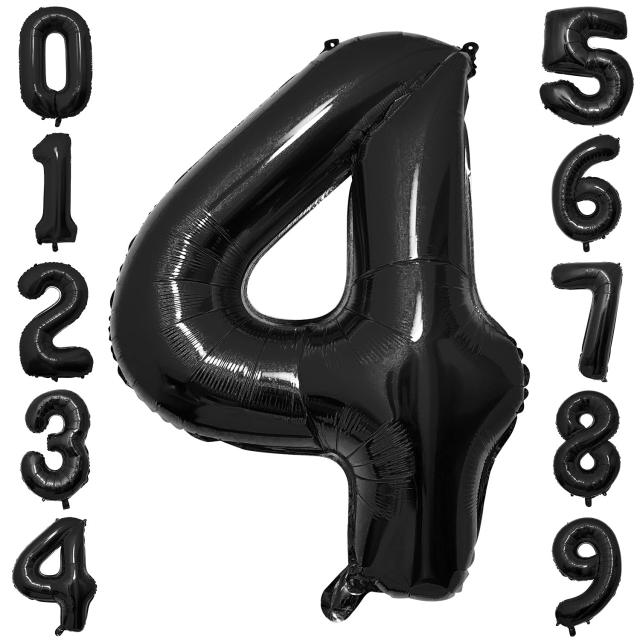 大きい 数字 4 バルーン バースデー パーティー 誕生日 風船 飾り セット 40inch,100cm (ブラック, 4)