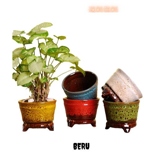 FaceColor 釉薬植木鉢 小型 サボテン鉢 盆栽鉢 陶器製 鼎型デザイン 3号鉢 直径約9.5CM 高さ約7.5CM 窓飾り 屋内外利用可 山野草 ハーブ
