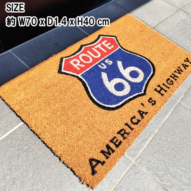 玄関マット ルート66 敷物 コイヤー 大きい ブラウン ROUTE66 バルコニー 泥落とし ナチュラル アメリカン雑貨 ポップ ドアマット