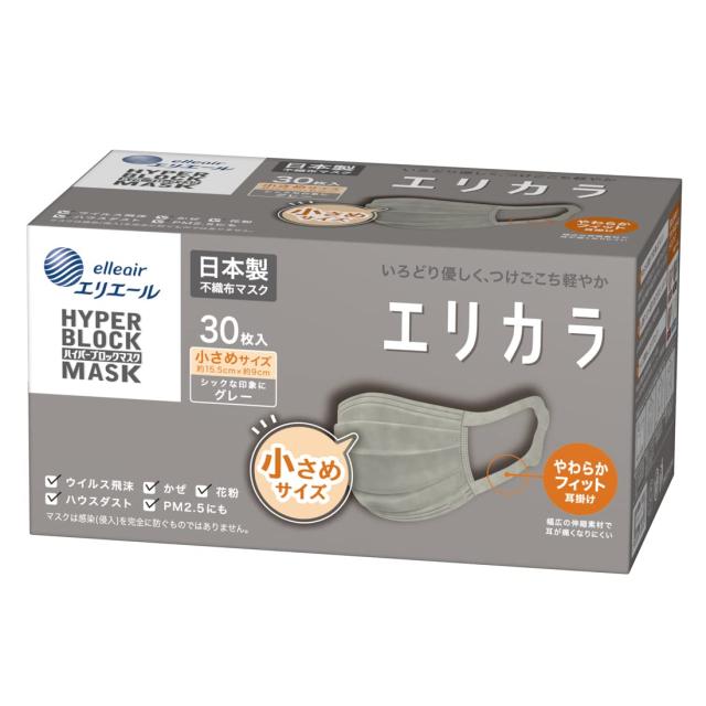 エリエール (日本製 不織布)ハイパーブロックマスク リラカラ グレー 小さめサイズ 30枚入 PM2.5対応