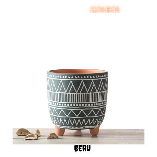 景徳焼 植木鉢 陶器鉢 おしゃれ 鉢 -プランター 底穴 赤い陶 陶土 素焼き調 几何模? レトロな植木鉢 プランター 鉢植え 北欧 室内 インテ
