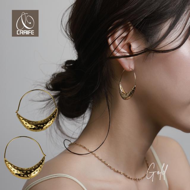 ピアス 大ぶり フープピアス 金属アレルギー対応 18Kコーティング サージカルステンレス レディース 大人 モダン かわいい エレガント ジュエリー ゴールド プチプライス高見え CRAIFE