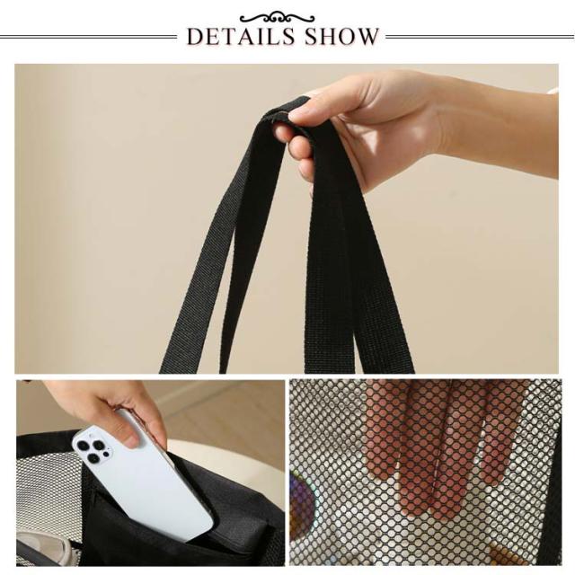 | 海やプール、旅行、バーベキュー、キャンプなど夏のアウトドアに最適なビーチバッグ。 水濡れするアクティブシーンでも使用ができる!レジャーのお供にぴったりなアイテム。 メッシュ素材でできているから、中に入れたものが一目で分かる♪探しやすく取り出しやすいのも魅力。 通気性が良い、メッシュ素材。水切りも良く、シャンプーやボディソープ等カバンに入れたまま浴室に持ち込み可能。 マチ幅があり、コスメポーチとして使うのもおススメ♪お財布等の小物を入れてカバンの中に収納しておけばバッグインバッグにも。 手持ちの部分は幅を広く設計して、荷物持ち時の負担を減らします。 普段使いにもぴったりなおしゃれなアイテム。透け感のあるメッシュタイプで涼し気な雰囲気。 | |