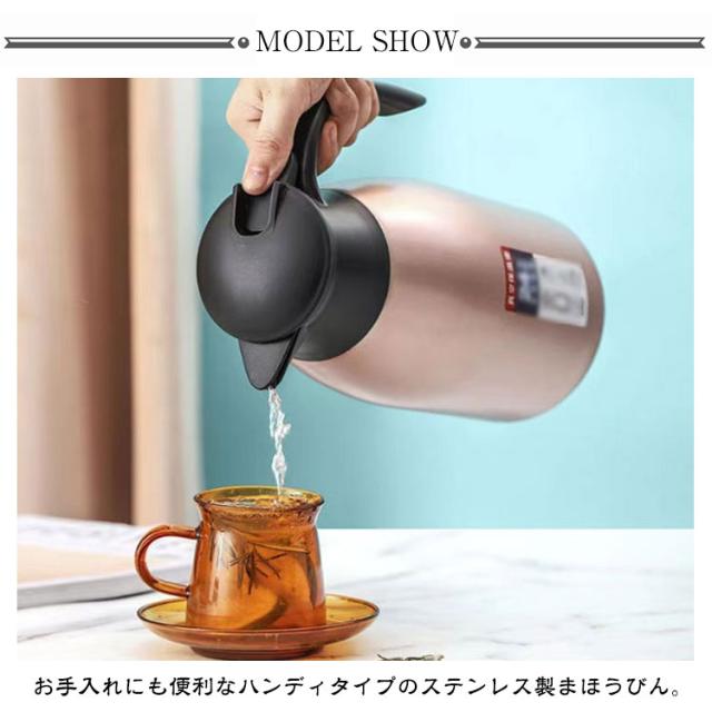 送料無料 ステンレスポット 2L 魔法瓶 2リットル 真空断熱 まほうびん ポット 卓上 保冷 保温 おしゃれ 北欧 大容量 広口 氷 ステンレス 卓上ポット シンプル 2000ml 省エネ 節電 お湯 お茶 温かい コーヒー 冷たい 紅茶