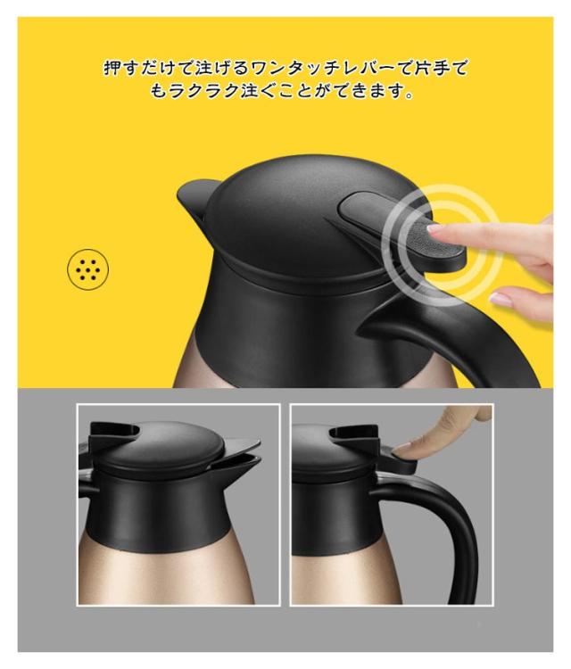| 【2L大容量】【ステンレスポット】【保温 保冷】 お手入れにも便利なハンディタイプのステンレス製まほうびん。 ステンレス真空断熱構造のため、保温・保冷で1年中大活躍。 大きな氷も入れやすい広口なので、ポットに氷を入れて、そこにドリンクを注ぐだけで簡単にアイスドリンクがつくれます。 押すだけで注げるワンタッチレバーで片手でもラクラク注ぐことができます。 | |