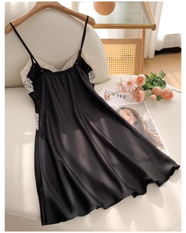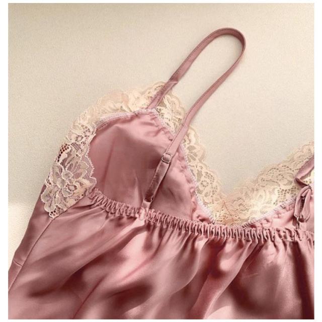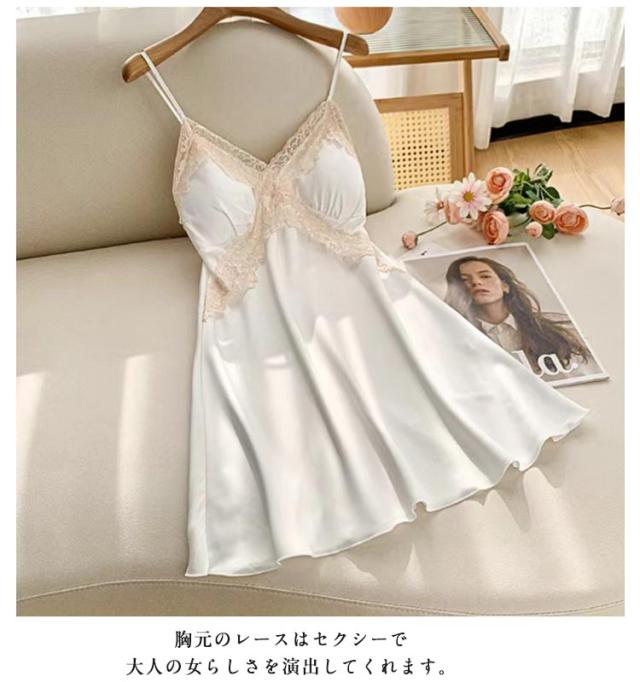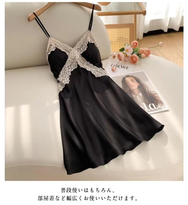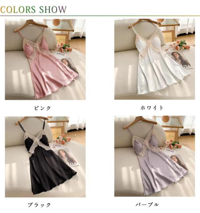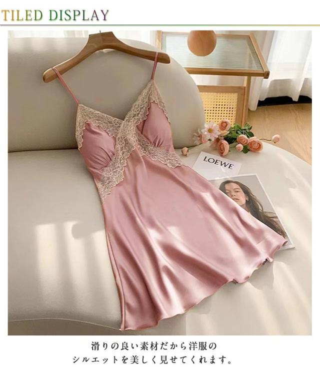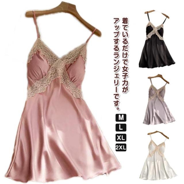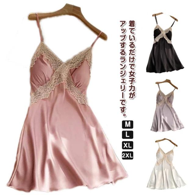 部屋着 ランジェリー レディース ルームウエア キャミソール カップ付き ワンピース スリップ インナー 大きいサイズ サテン 女性用 下着 ランジェリー ネグリジェ レース飾り 可愛い お洒落 透け防止