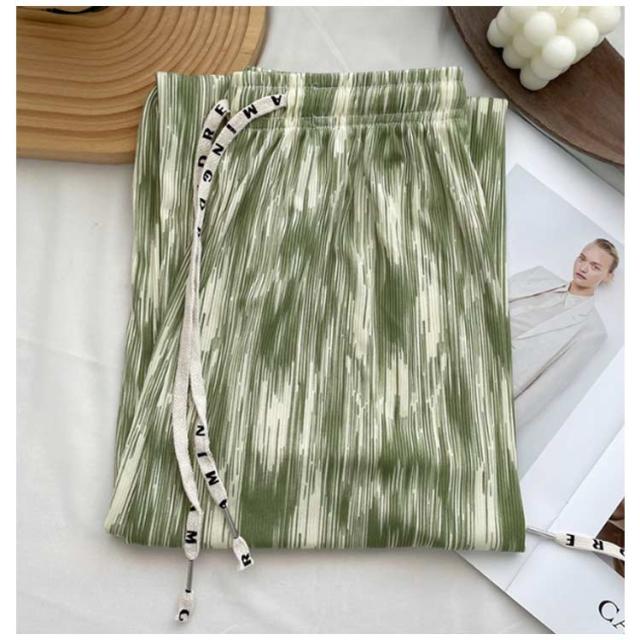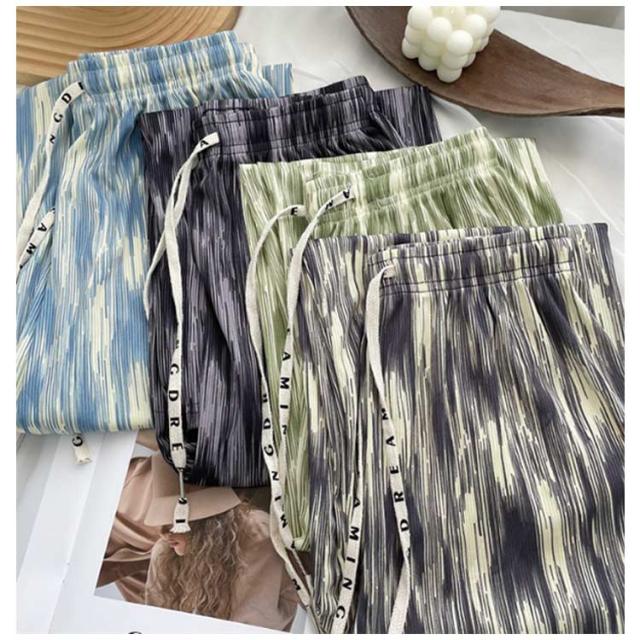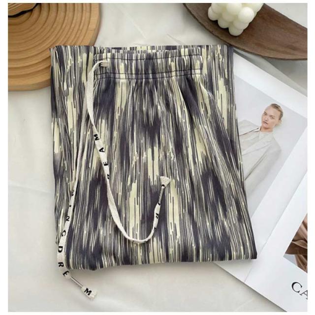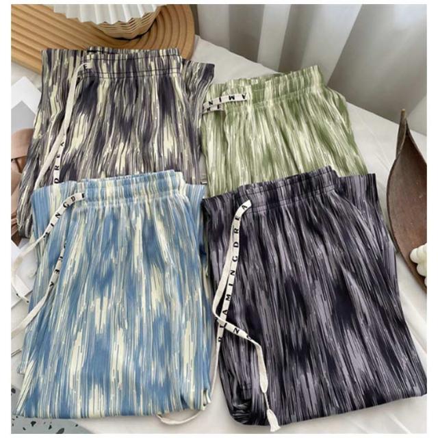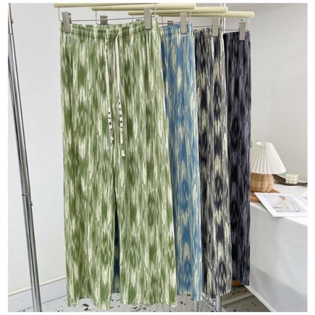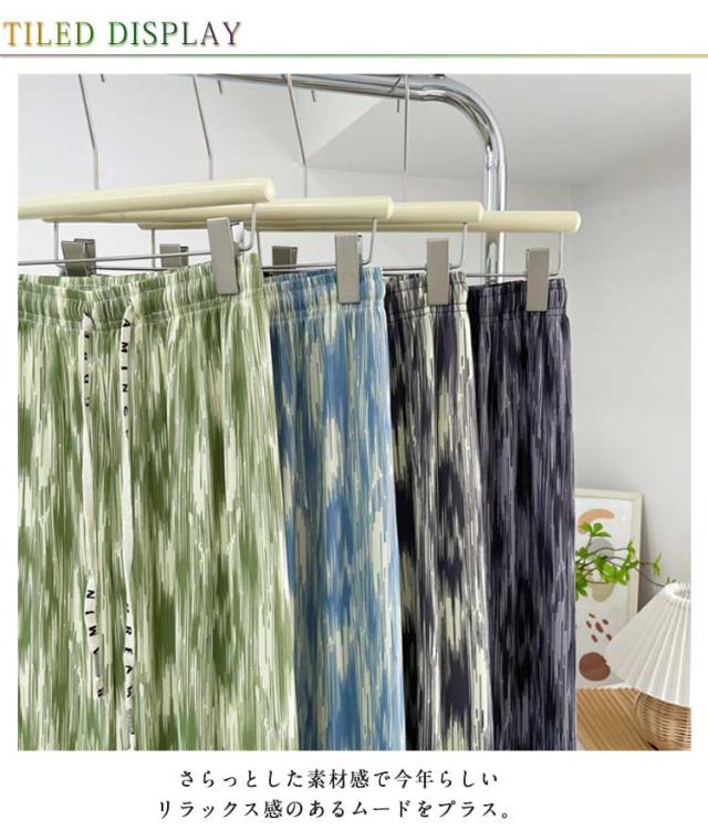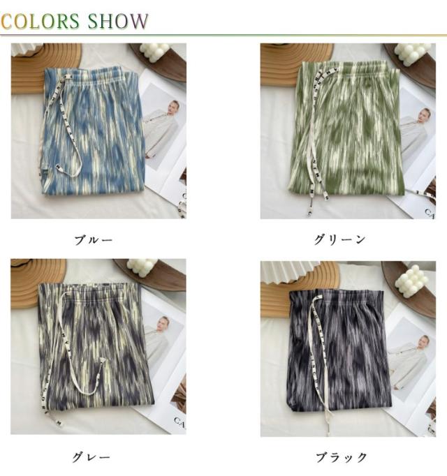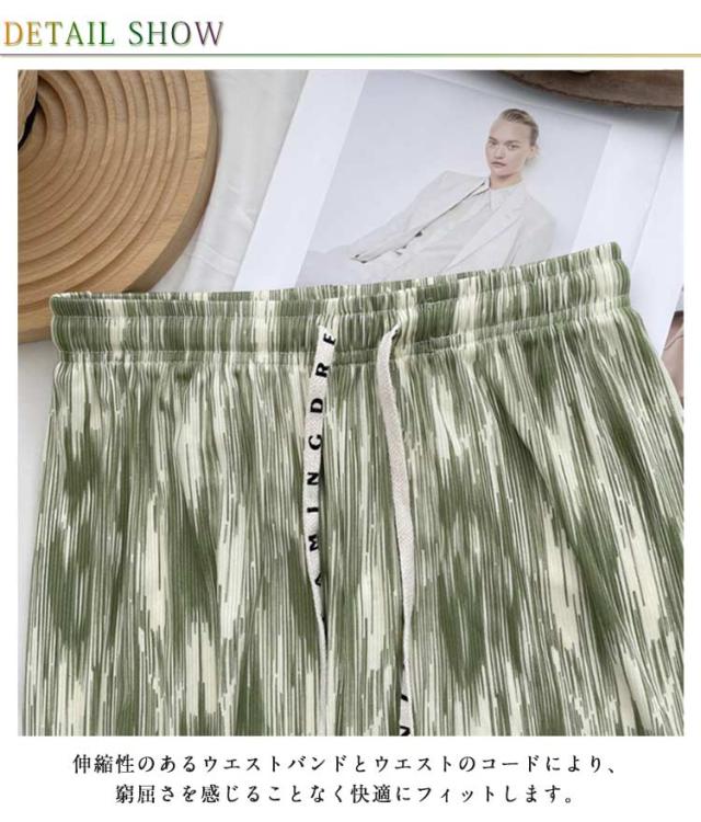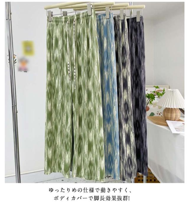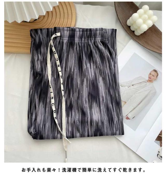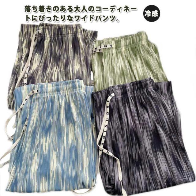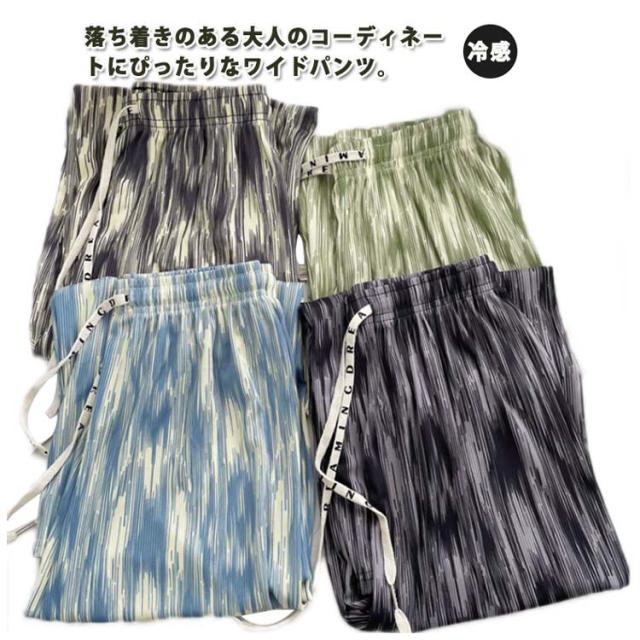 レディース お洒落 ワイドパンツ ひんやり ウエストゴム 涼しい 冷感 ストレット ゆったり ロングパンツ リラックスパンツ らくちん 総柄 きれいめ ハイウエスト カジュアル 春夏 プリーツ
