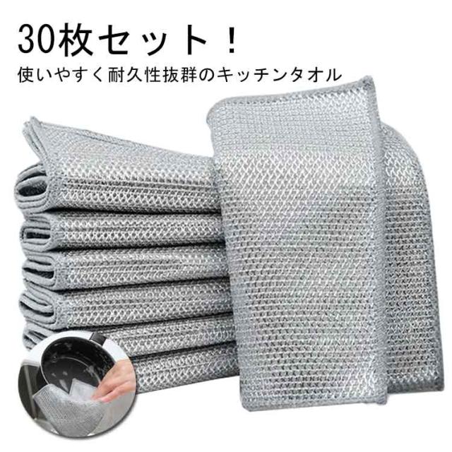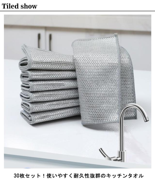 30枚セット 30枚セット キッチンクロス キッチンタオル 食器洗い ノンスクラッチワイヤー 食器洗い 長持ち 布巾 ぞうきん ふきん 台拭き ワイヤーふきん かきとる クロス メッシュ ワイヤー食器用雑巾 ボトル洗浄 食器拭き 多目的 家庭用