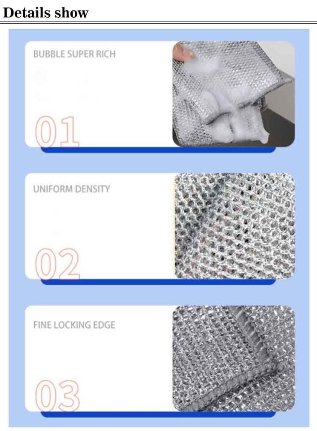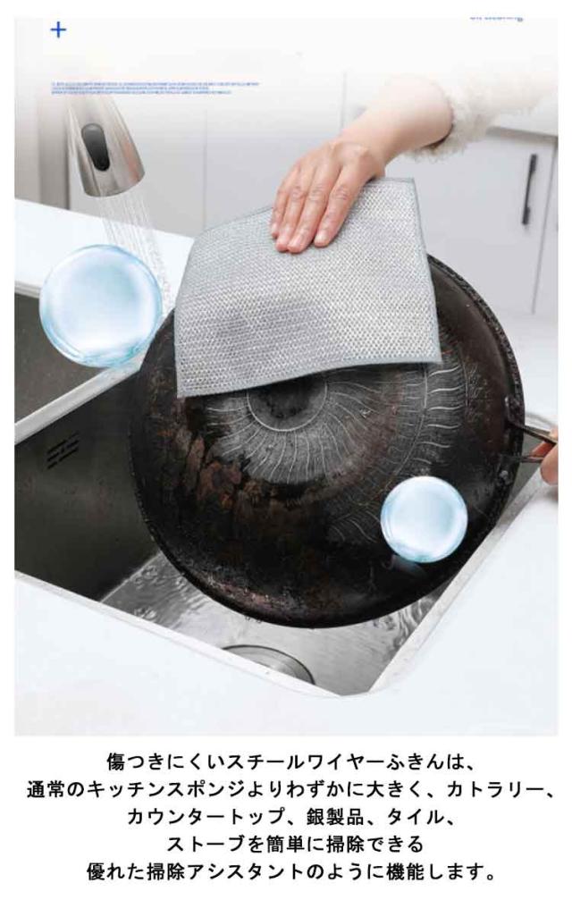 | 30枚セット!使いやすく耐久性抜群のキッチンタオル スチールワイヤーふきんがあれば、使い捨てふきんやスポンジは必要ありません。お手入れが簡単で、何百回も再利用できます。 掃除用具だけでなく、多用途なキッチンツールでもあります。丁寧に作られたワイヤータオルでキッチン用品を傷から優しく守ります。 傷つきにくいスチールワイヤーふきんは、通常のキッチンスポンジよりわずかに大きく、カトラリー、カウンタートップ、銀製品、タイル、ストーブを簡単に掃除できる優れた掃除アシスタントのように機能します。 多用途に使えるスチールワイヤーふきんの機能で食材の皮も簡単にむくことができ、お料理を華やかに彩ります。 さまざまなキッチンの表面、鍋、フライパン、カトラリー、平鍋、カウンタートップ、コンロに安全に使用でき、汚れがありません。 | |