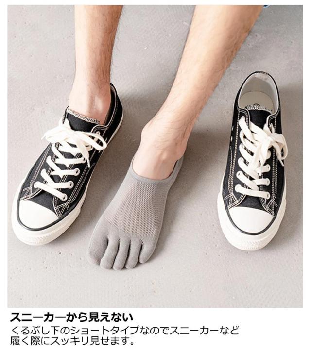 | 【5足セット/脱げにくいシリコン付】 蒸れずにニオイ対策 指と指との間の汗を吸収するので蒸れにくく清潔で快適です。 滑り止めで脱げにくい かかと内側にシリコンゴムが付いているので脱げにくく、ぴったりフィットです。 スニーカーから見えない くるぶし下のショートタイプなのでスニーカーなど履く際にスッキリ見せます。 ストレッチ ストレッチ性が高く、ピッタリとフィットし快適に履いていただけます。 | |