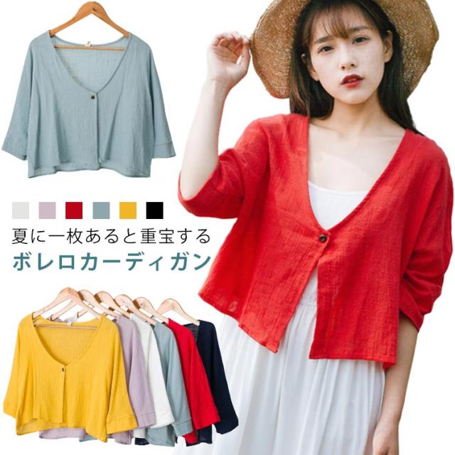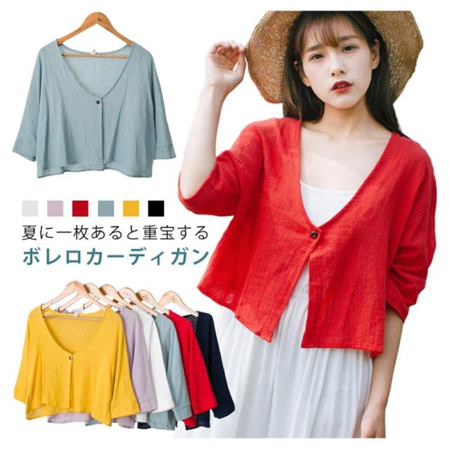 春夏 大きいサイズ サマーカーディガン レディース 五分袖 Vネック 紫外線対策 カーディガン カーデ UV対策 半袖 冷房対策 前開き 綿麻 アウター カーディガン UVカーデ ボレロ リゾート 薄手 上着 おしゃれ 羽織り 透け感 海 暑い日