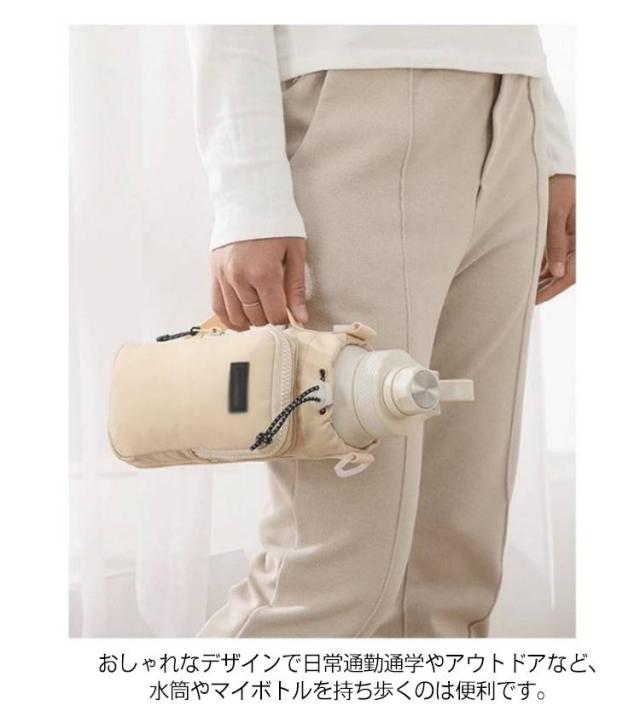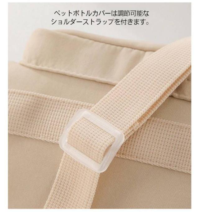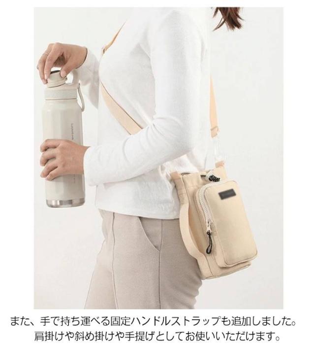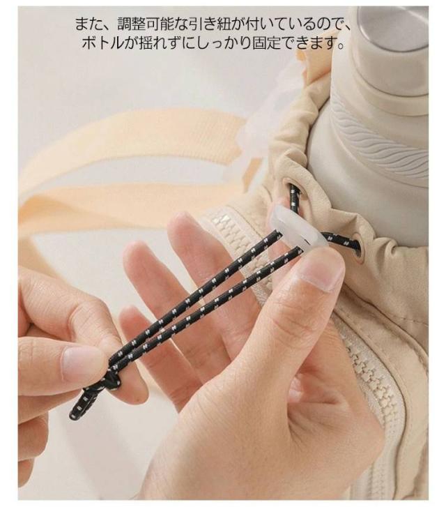 | ペットボトルホルダーの高さは23cm、底の直径は10cmで、口径が10以下のボトルに適しています。 また、調整可能な引き紐が付いているので、ボトルが揺れずにしっかり固定できます。 ペットボトルカバーは調節可能なショルダーストラップを付きます。 また、手で持ち運べる固定ハンドルストラップも追加しました。 大容量水筒の場合、使用方式を変更して、負担を軽減できます。 肩掛けや斜め掛けや手提げとしてお使いいただけます。 調節可能なショルダーストラップは体型問わず、大人・子供関わらずすべての方々にご利用いただけます。 ジッパー式の外ポケットは携帯電話、suica、鍵など普段持ち歩く小物を収納できます。 おしゃれなデザインで日常通勤通学やアウトドアなど、水筒やマイボトルを持ち歩くのは便利です。 | |