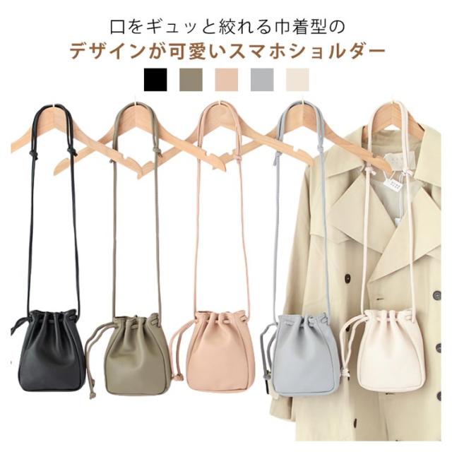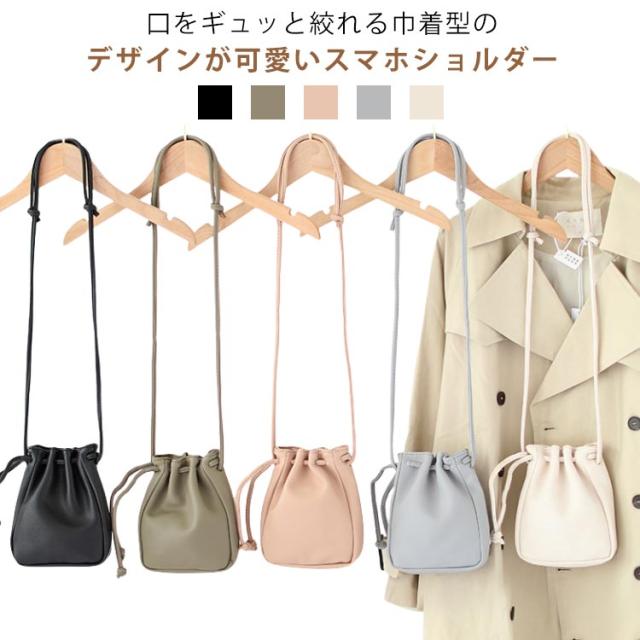 スマホポーチ スマホショルダー 巾着 斜めがけ ミニバッグ 送料無料 お財布バッグ ショルダーバッグ 小さめ 大人 送料無料 レディース PUレザー おしゃれ シンプル きれいめ 上品 かわいい 通勤 通学 旅行
