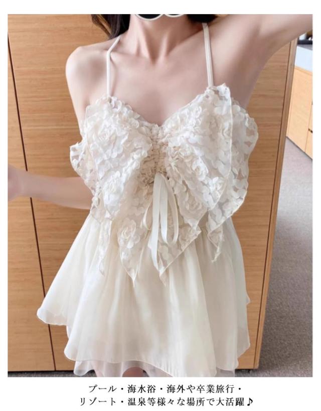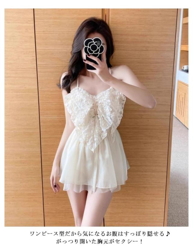 | 体型カバーも叶う大人女子にもぴったりなワンピースタイプの水着です。 ワンピース型だから気になるお腹はすっぽり隠せる♪ がっつり開いた胸元がセクシー! 歩くたびにふんわり揺れるエアリーなスカートはとってもガーリーでキュート。 スカートの下はショートパンツになっているのでめくれても安心。気になるヒップ〜太ももをしっかりオシャレにカバー◎ プール・海水浴・海外や卒業旅行・リゾート・温泉等様々な場所で大活躍♪ | |
