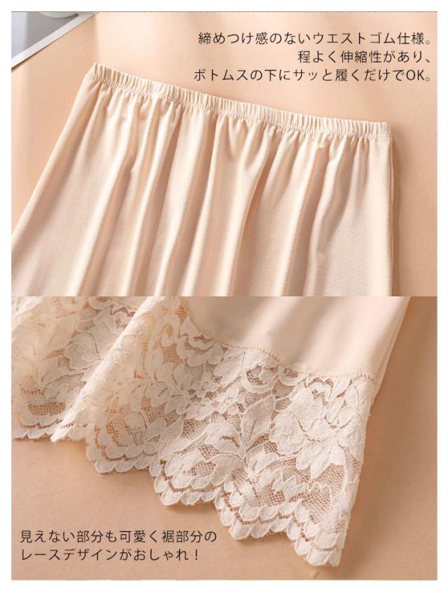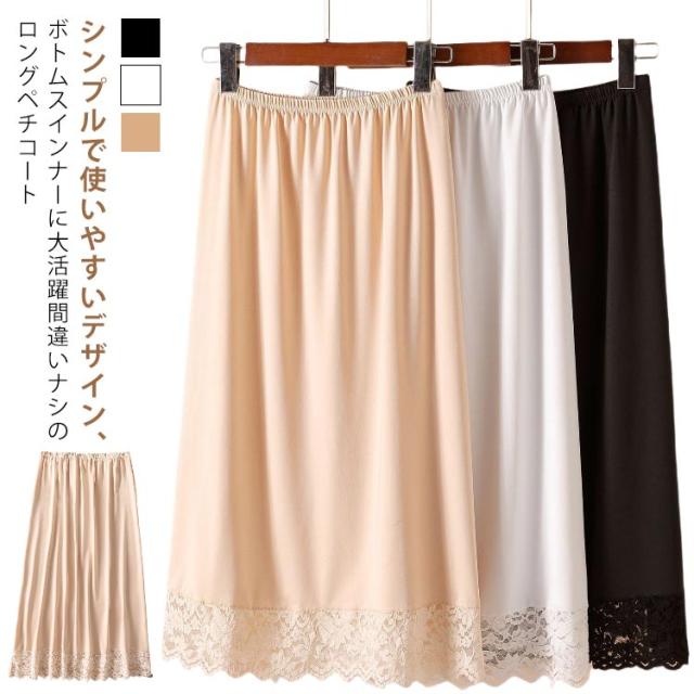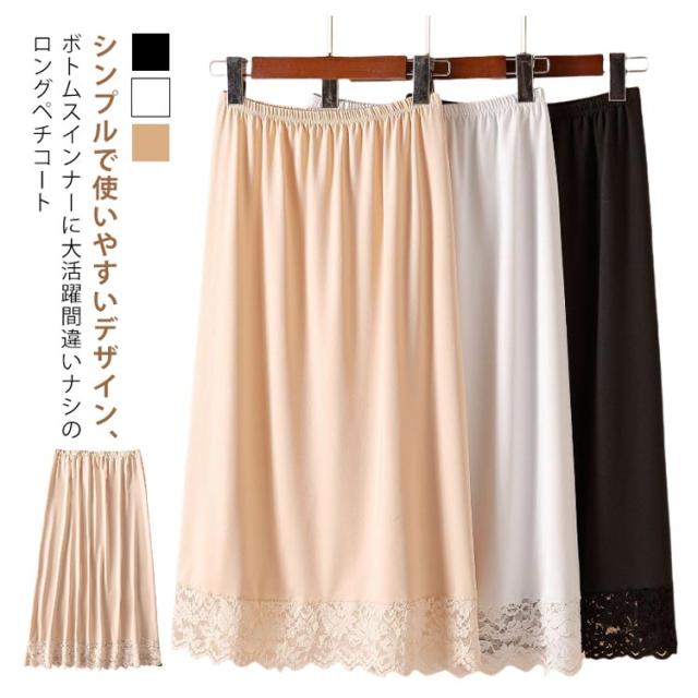 チラ見せ 裾レース ロング丈 ペチコート ペチスカート ワンピース レースペチコート 下着 裾 インナースカート ワンピ インナー アンダースカート 透け防止 インナーペチコート 快適 サラサラ 送料無料 シンプル