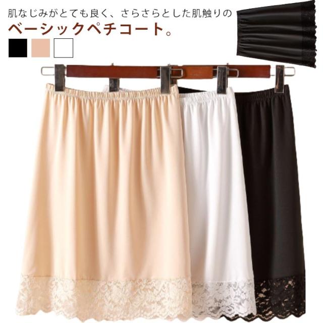 ペチスカート 見せる 透け防止 静電気防止 裾レース 送料無料 丈50cm 送料無料 レースペチコート アンダースカート インナースカート フォーマル ドレスインナー スカート 透けない 抜け感 ボトムス 大人