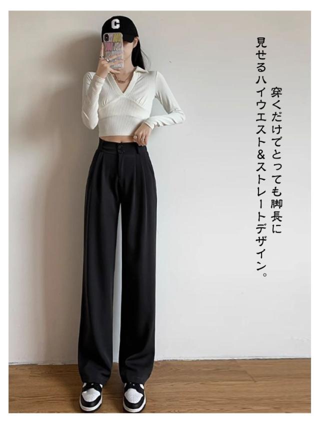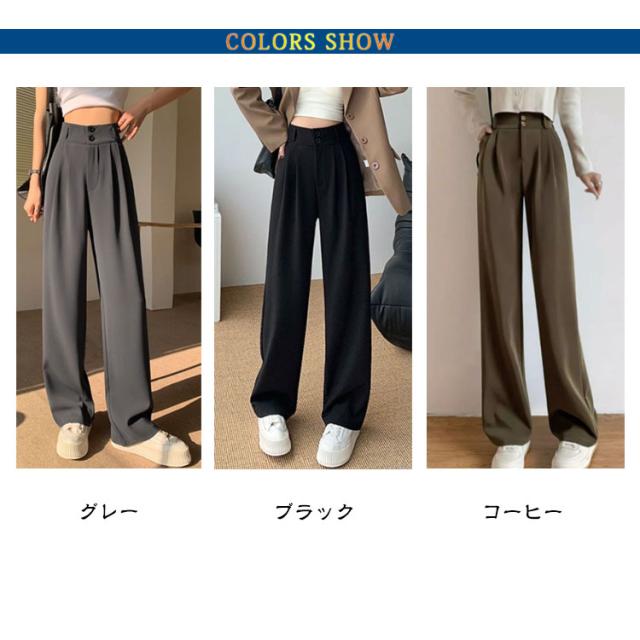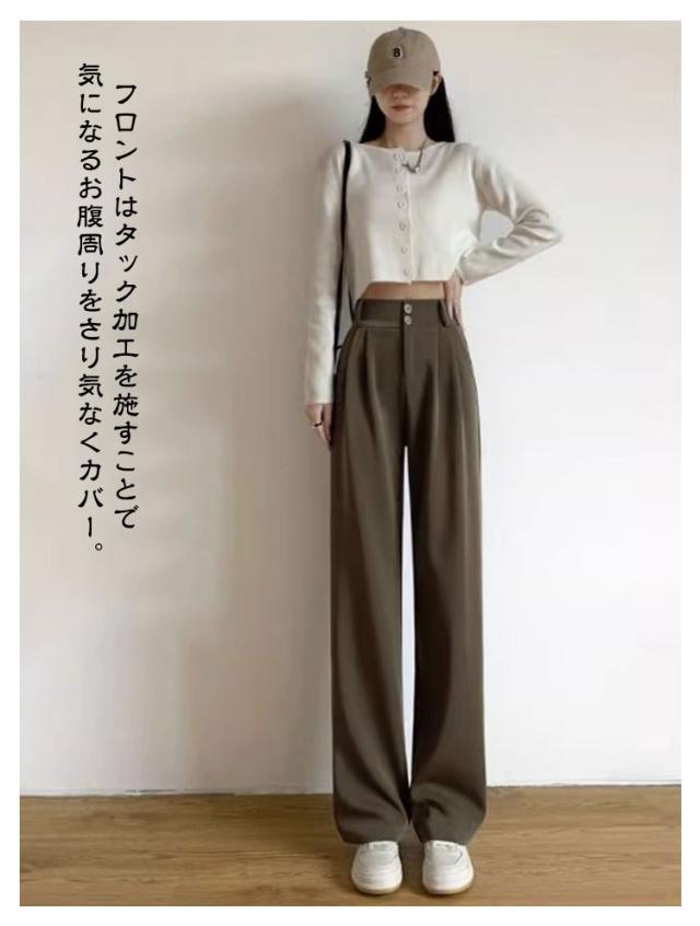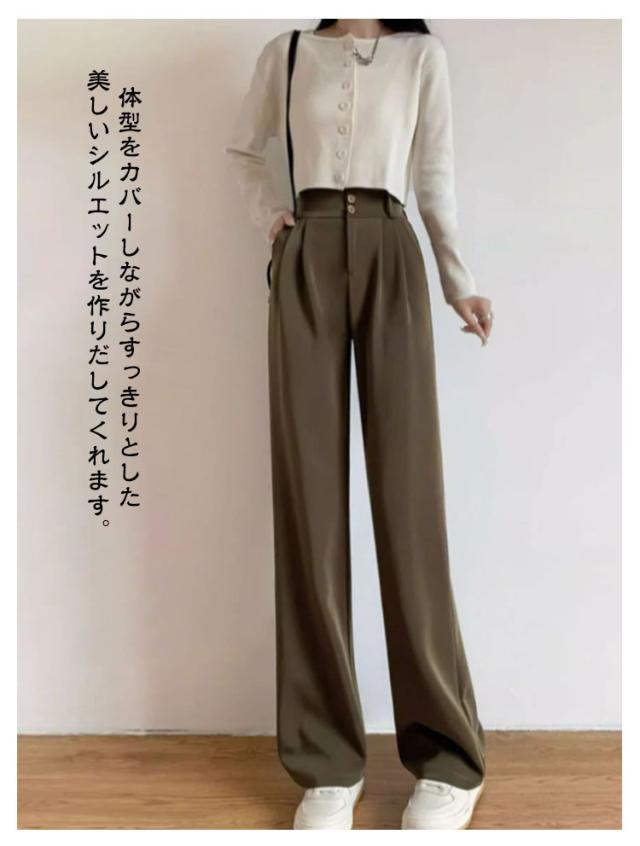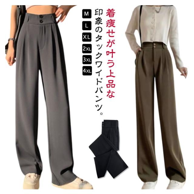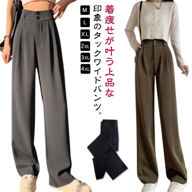 春 スーツパンツ スラックスパンツ レディース タックパンツ ワイドパンツ イージーパンツ 夏 スラックス タックパンツ ロングパンツ バックウエストゴム カジュアルパンツ 秋 ボトムス ハイウエスト 通勤 オフィス カジュアル 低身長 高身長
