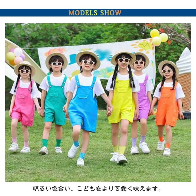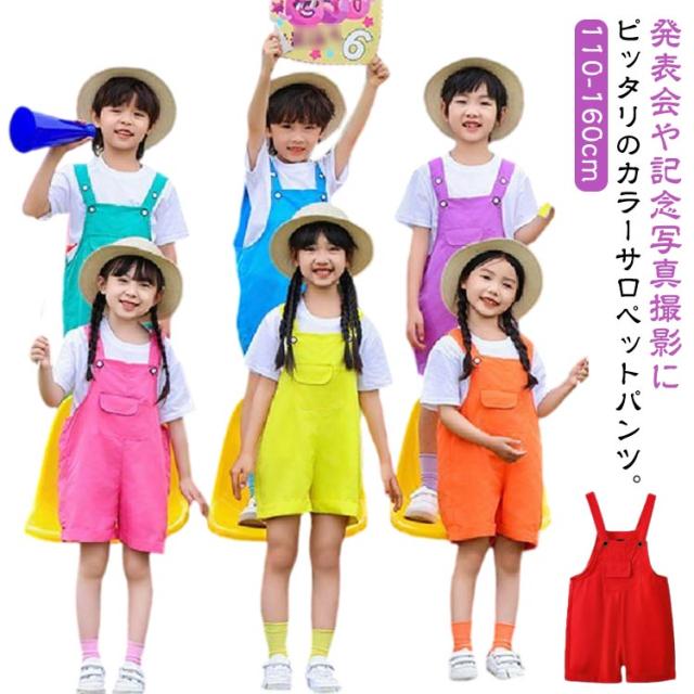 男の子 サロペットパンツ カラーパンツ キッズ カラフル 春夏 キッズ 卒園式 オーバーオール 韓国子供服 女の子 サロペット 発表会 保育園 演出服 応援団 ショートパンツ 短パン 夏服 韓国子供服 ダンス衣装 無地 卒業写真撮影 記念写真 HIPHOP パンツ